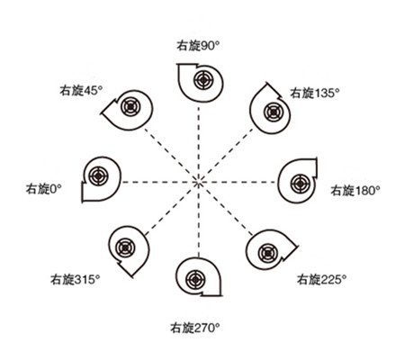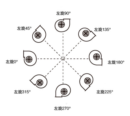 注:玻璃鋼離心風(fēng)機(jī)的方向可以在允許的范圍內(nèi)進(jìn)行定制,如118°、35°等這些不規(guī)則的角度。