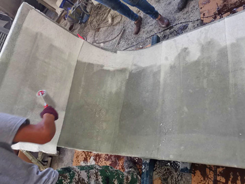 f、按照既定的標準在模具上刷樹脂與玻璃纖維材料,一般玻纖材料主要以玻纖氈與玻纖布為主;