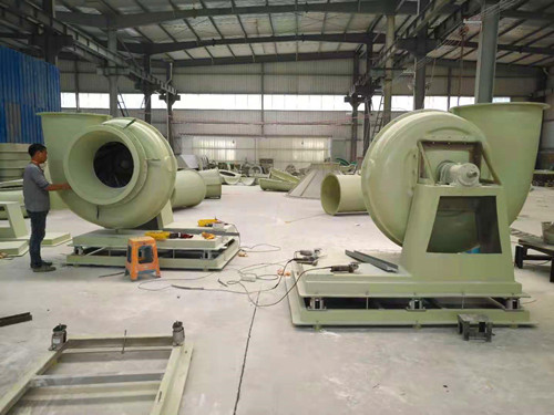 c、如果風機安裝在廢氣塔之前,那么需要處理的氣體首先進入風機內部,然后再將其送入凈化塔中。如果風機安裝在廢氣塔后面,那么風機主要靠吸風的方式將氣體首先吸入玻璃鋼凈化塔中。