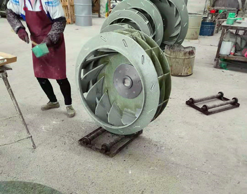 作為風(fēng)機(jī)的主要轉(zhuǎn)動(dòng)裝置,玻璃鋼風(fēng)機(jī)葉輪使用的原材料是乙烯基樹脂與玻纖氈。主要的制作工藝為手糊工藝,葉輪的蓋板、葉片都是單獨(dú)進(jìn)行制作之后再組裝起來(lái)的。