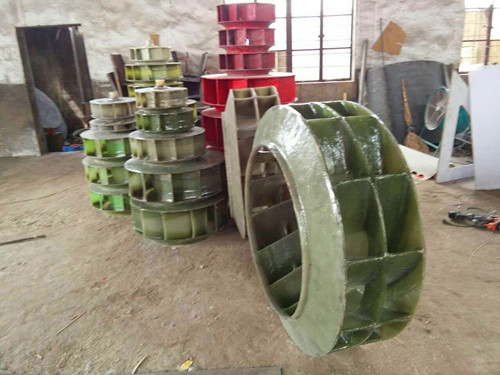 b、葉輪的制作工藝為手糊操作,單獨將葉輪的各個部件制作完成后再進行組裝工作,在組裝之前要確保葉輪各部件完全固化。