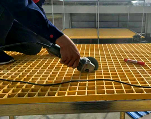 a、雖然玻璃鋼格柵板的強度很高,但是材質并不是很硬,在切割時僅需要使用一些小型的電動切割工具即可。切割時建議選擇厚度偏薄的鋸片,這樣尺寸的誤差更小。