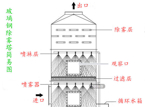 什么是玻璃鋼除霧塔,即利用化學與物理的效果將工業生產中所產生的酸堿,對空氣有害的氣液體進行過濾與中和反應。將其中有害的物質中和,待其符合排放標準之后進行除霧處理再將其排放進大氣環境中。