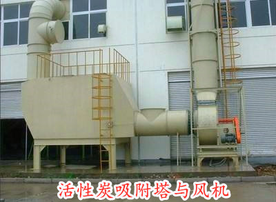含塵氣體由玻璃鋼離心風機提供動力,正壓或負壓進入塔體,由于活性炭固體表面上存在著未平衡和未飽和的分子引力或化學健力。